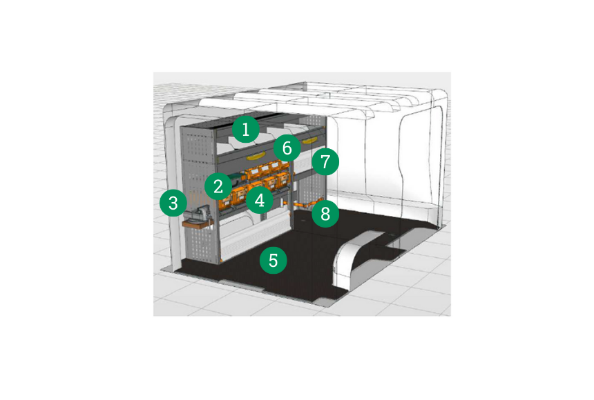 8. Alloggiamento porta valigette con cinghia di fermo in sicurezza