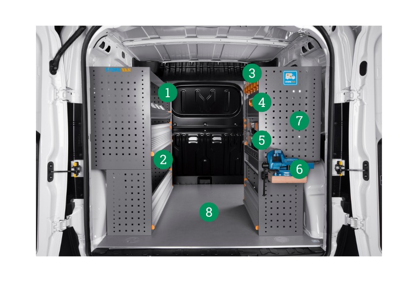 - Pianale fenolico da 9 mm e porta occhielli per fissaggio cinghie ferma carico. Incluse le serrature di sicurezza su porta posteriore e laterale