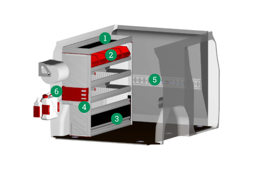 - Sistema di ancoraggio con cinghie (alloggiamento caldaia, scaldabagno etc…)