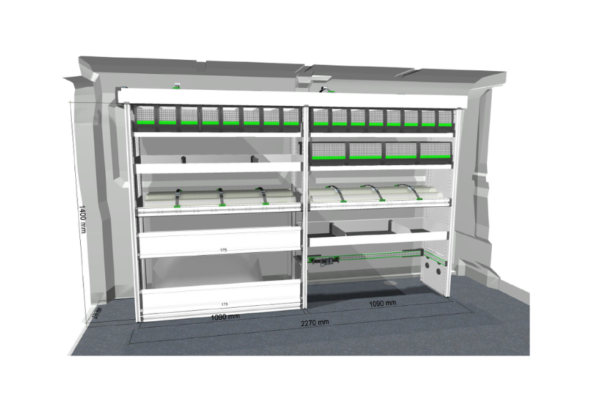 - 2 Ripiani porta tubi / merci da trasportare con cinghie di fissaggio