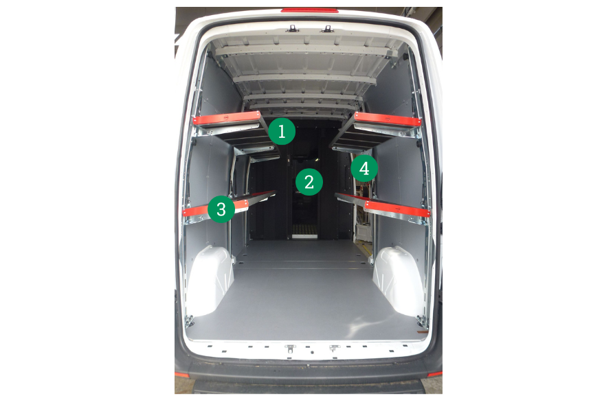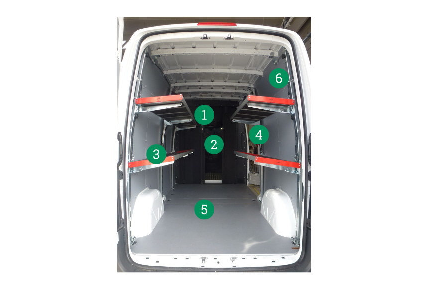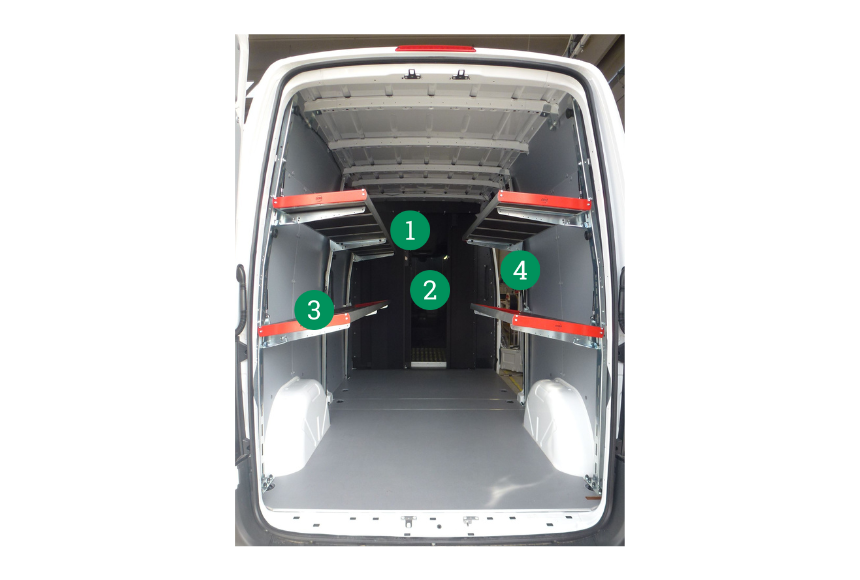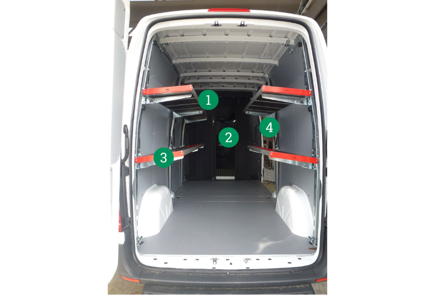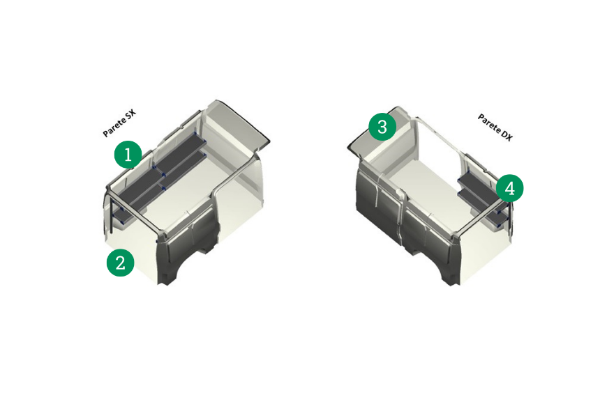 - Scaffalatura in alluminio e materiali composti che permettono di avere una maggior portata residua sul mezzo, grazie all’utilizzo di estruso di alluminio è possibile caricare sul piano 100kg.