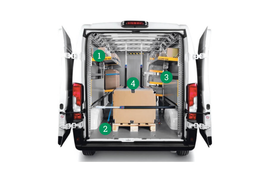 - 4 ripiani richiudibili con portata di 80kg e bordi rialzati per bloccare il carico