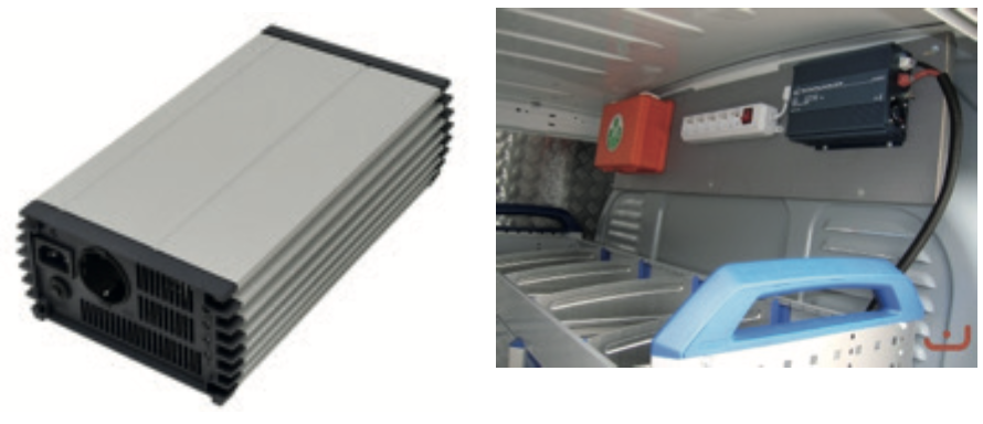 Inverter è un dispositivo elettronico che trasforma una corrente continua in una corrente alternata alla stessa tensione oppure ad una tensione diversa. Generalmente viene inserito in allestimenti come officine mobili o mezzi destinati alle manutenzioni degli impianti.