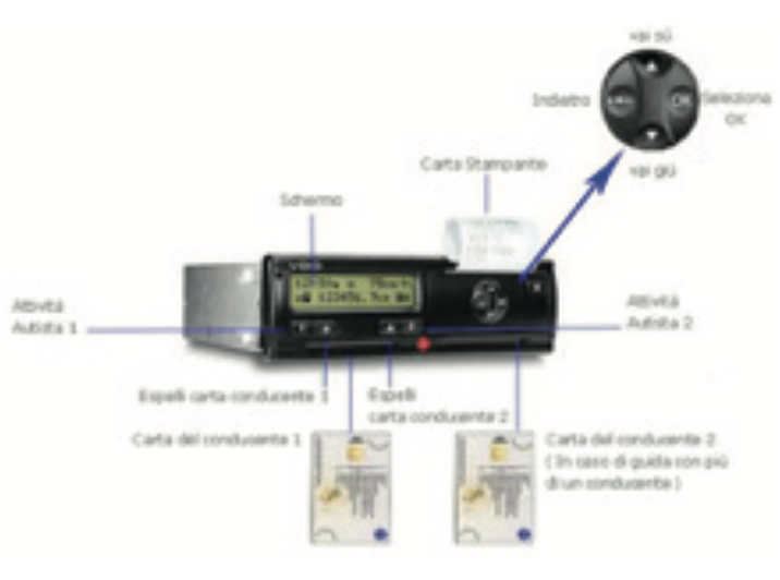Tachigrafo detto anche cronotachigrafo. E’ la scatola nera installata obbligatoriamente sui veicoli adibiti al trasporto di cose di peso complessivo superiore alle 3,5 tonnellate , e su veicoli adibiti al trasporto di passeggeri con numero di persone, compreso il conducente, superiore a nove. Il Tachigrafo registra i tempi di guida e riposo dei conducenti, il funzionamento si basa su un sistema di tracciatura dei dati relativi a velocità e distanze percorse. Lo scopo principale è quello di migliorare le condizioni di lavoro e la sicurezza stradale.